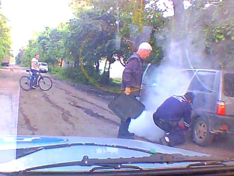 Во время беседы с 79-летним водителем сотрудники ДПС обратили внимание, что со стороны выхлопной трубы у бензобака идет дым. При этом запах больше был похож не на выхлопные газы, а на продукты горения резины или пластика.