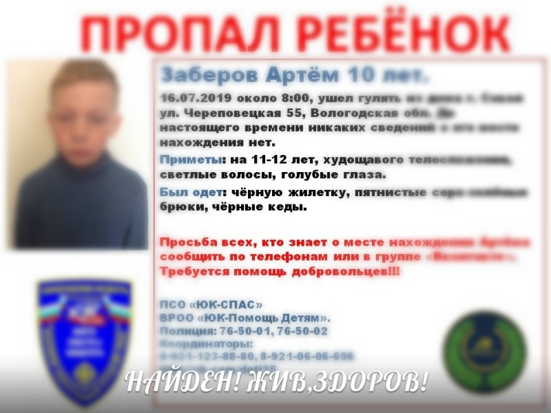 Напомним, о пропаже 10-летнего Артема Заберова мы писали ранее.