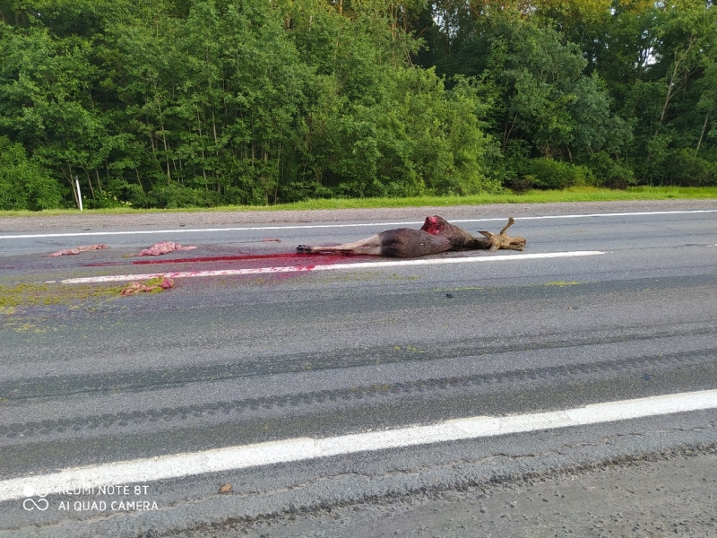 Жестокая гибель постигла лося после столкновения с автомобилем