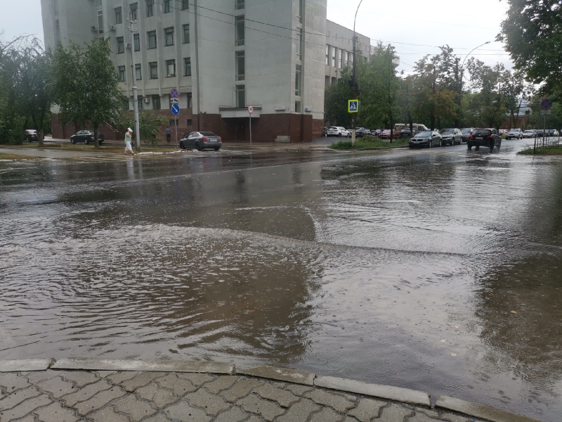 Раскаты грома горожане слышали еще с утра. Около полудня 19 июля «ливануло». Примерно за час выпало 16 миллиметров осадков. Месячная норма составляет 76 миллиметров.