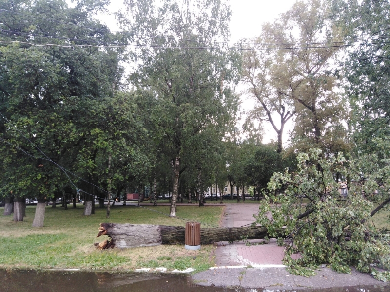 Кроме того, есть информация о 5 упавших деревьях, в том числе, и на площади Революции.