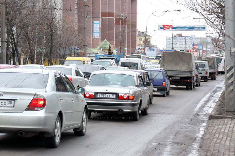 Огромная пробка образовалась на улице Ленинградской в Вологде