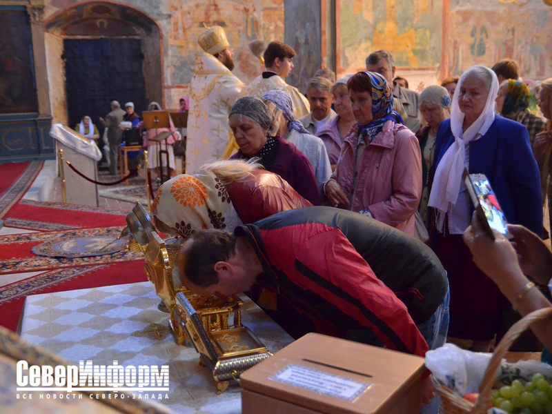 Сотни прихожан пришли в Софийский собор, чтобы прикоснуться к святыне