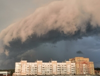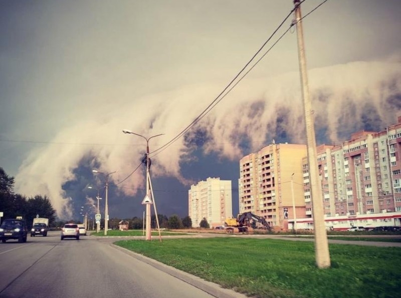 Уникальное природное явление наблюдали накануне жители города перед грозой.
