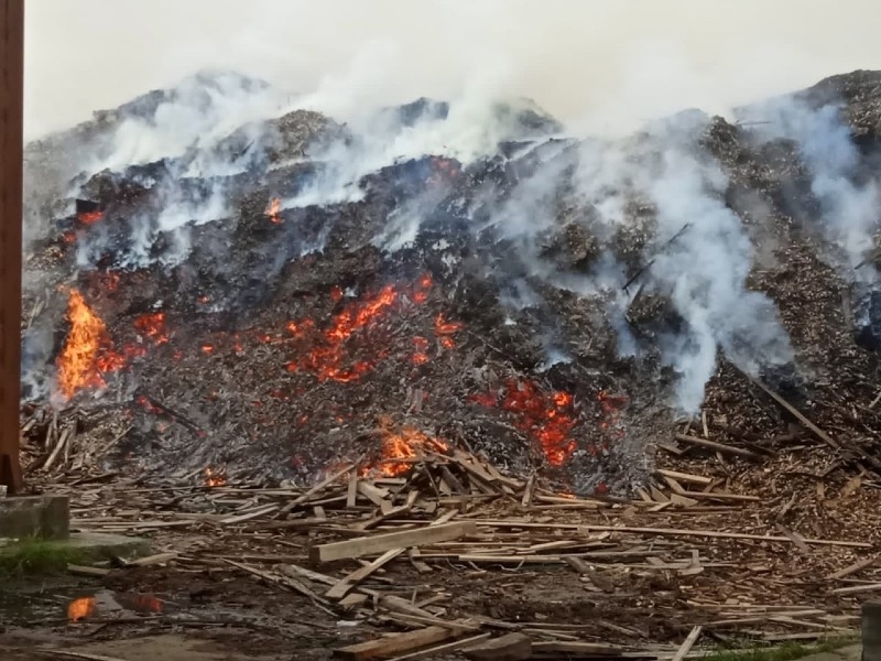 Накануне возгорание удалось локализовать, но сегодня ночью из-за внутреннего тления отходов деревообработки вновь возобновилось горение открытым пламенем.