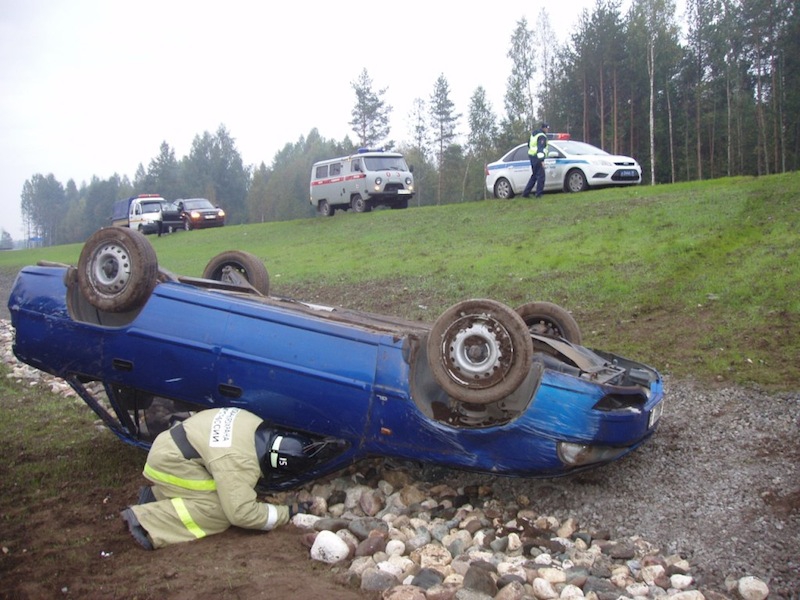 Иномарка опрокинулась в кювет на трассе "Вологда - Новая Ладога"