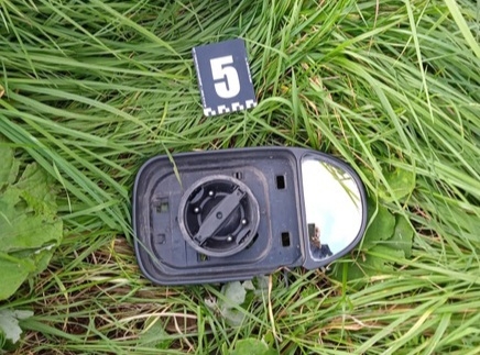 На месте обнаружено правое зеркало. Судя по маркировке, оно было установлено на "Газели".