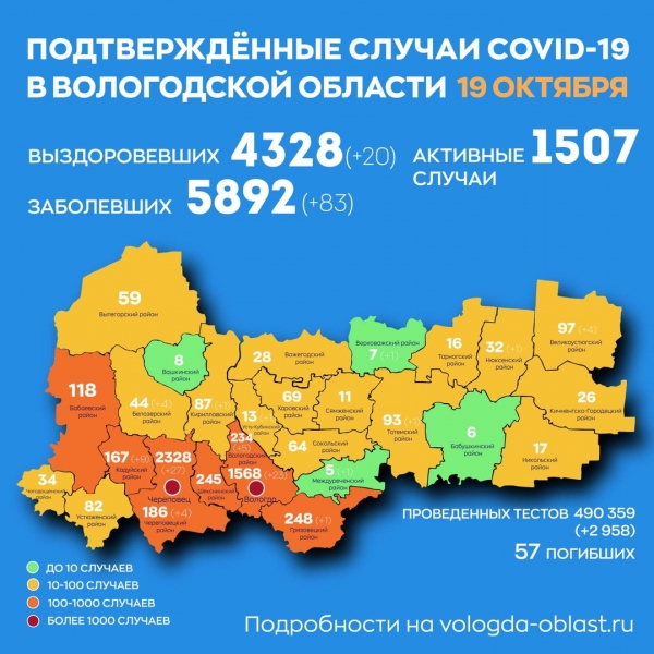 4328 вологжан поправились (20 за прошлый день) и 57 погибли, сообщает ИА «СеверИнформ».