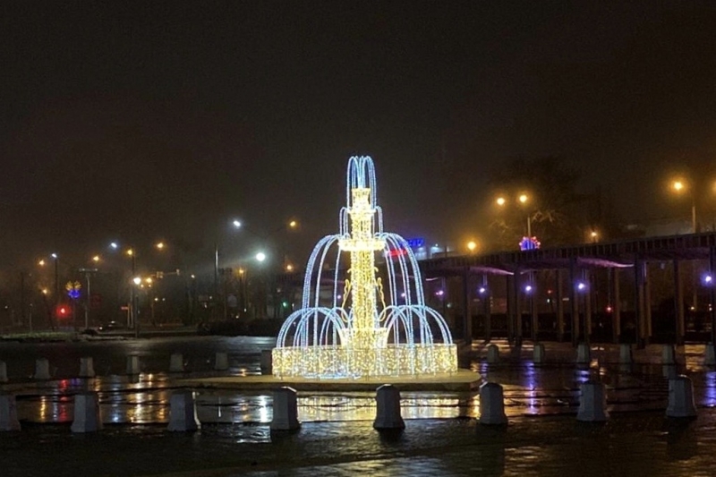 Блестящую конструкцию установят на площади Молодежи. Восьмиметровую конструкцию начнут ставить на следующей неделе. В высоту фонтан будет в полтора раза больше того, что украшал площадь прошлой зимой. Также он станет отличаться более широкой цветовой гаммой.