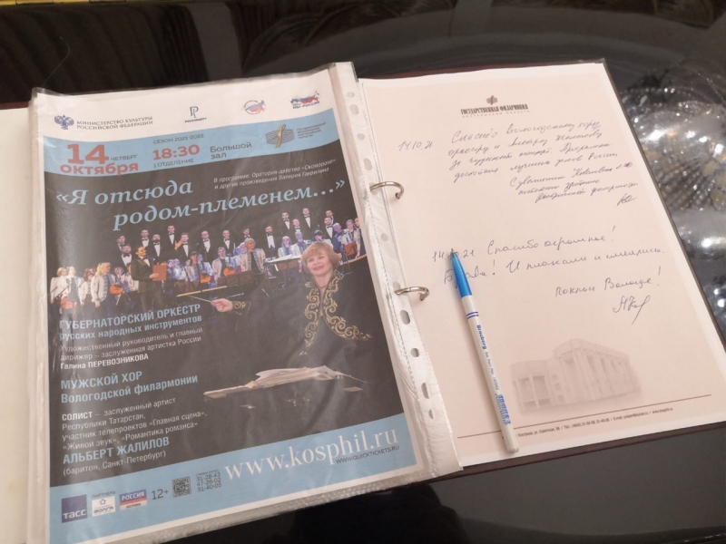 «13 октября в Ивановской филармонии состоялся концерт Вологодской филармонии с программой "Я отсюда родом-племенем... ". Ощущение полного восторга и открытия творчества Валерия Гаврилина. Шикарные оркестр, хор и солист Альберт Жалилов!!! Спасибо огромное за великолепный, потрясающий концерт! Очень рада знакомству с вашим творчеством!», - написала на странице Вологодской филармонии в соцсетях Елена Пасечник.