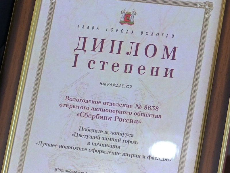 Вологодское отделение Сбербанка отмечено дипломом победителя конкурса «Цветущий зимний город»