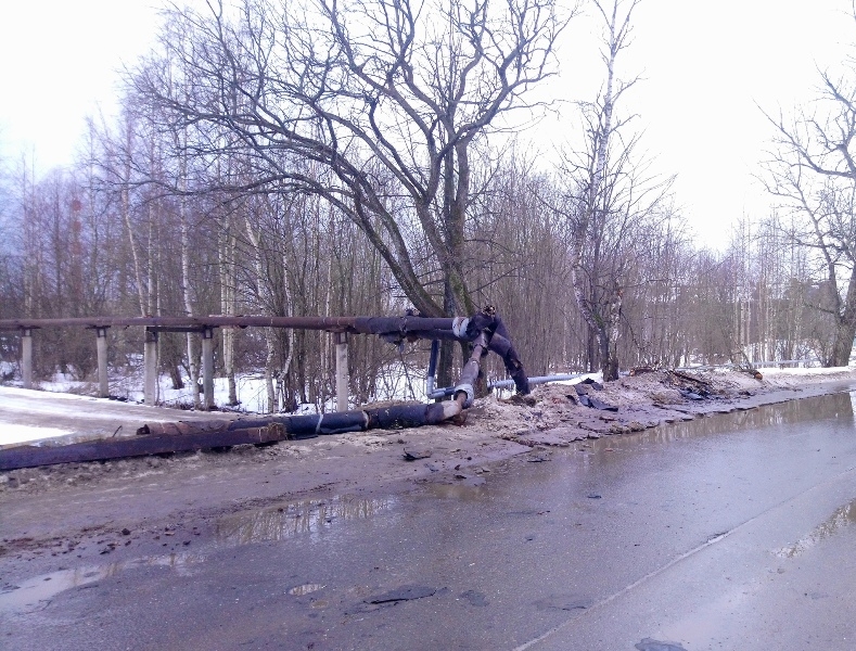 Известно, что самосвал перевозил щепу и после разгрузки водитель забыл опустить кузов. Проезжая по улицам, он зацепил трубу теплотрассы, которая проходит над улицей Ленинградская.
