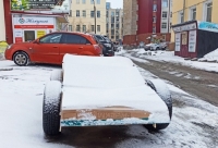 На парковке у дома №21 на Троицком проспекте Архангельска появился необычный объект — картонный автомобиль, который стоит поперек парковочных мест. Как пишет 29.ru, сама площадка расположена крайне неудобно — прерывает линию тротуара, пешеходы вынуждены обходить ее или протискиваться мимо машин. Как выяснилось, автором акции стала арт-группа «Всеобщие Инициативы Человеколюбия» (номерной знак картонного авто - VICHISKRA), ранее уже отметившаяся ироническими флешмобами.
