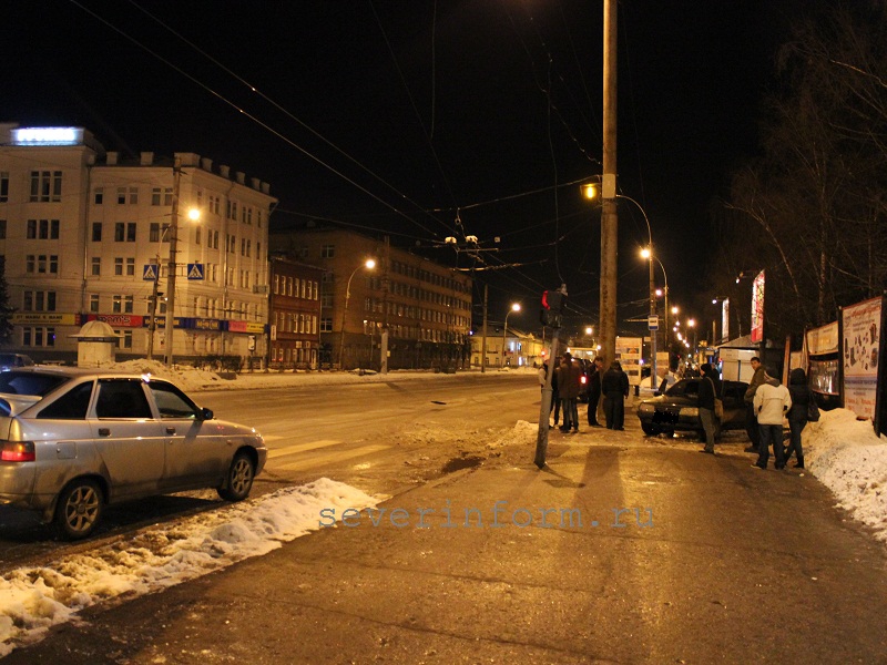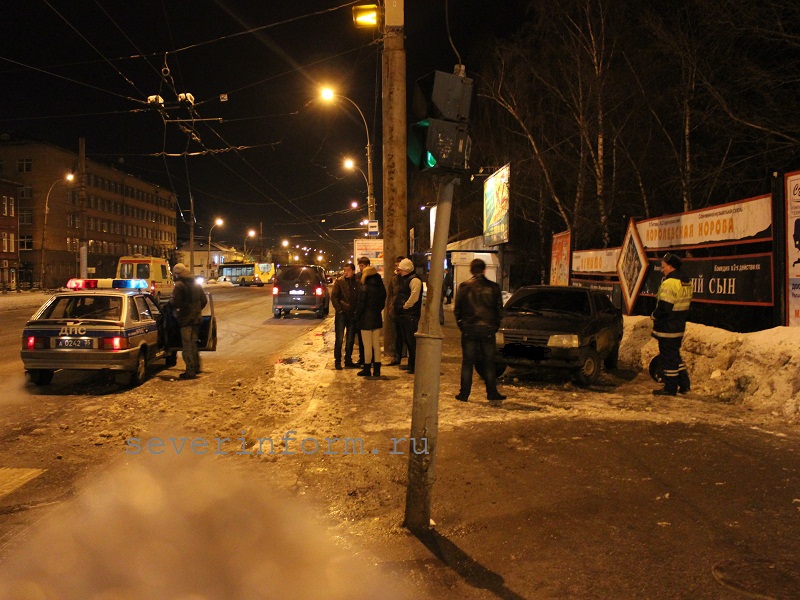 ГИБДД: Автомобиль врезался в столб и выехал на тротуар в центре Вологды