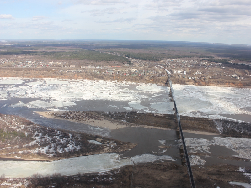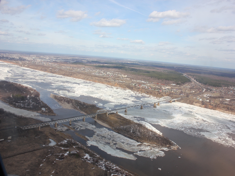 Ледоход из Великого Устюга двинулся в Архангельскую область. Это установили специалисты во время воздушной разведки на вертолете МИ-8 в субботу, 19 апреля.