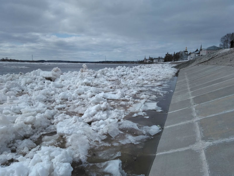 Подвижки льда начались на реке Сухона на востоке области. В Великоустюгском районе повышаются уровни воды: в Великом Устюге по состоянию на 10 утра – 370 см (+5 см за сутки), в деревне Демьяново 395 см (+15 см).