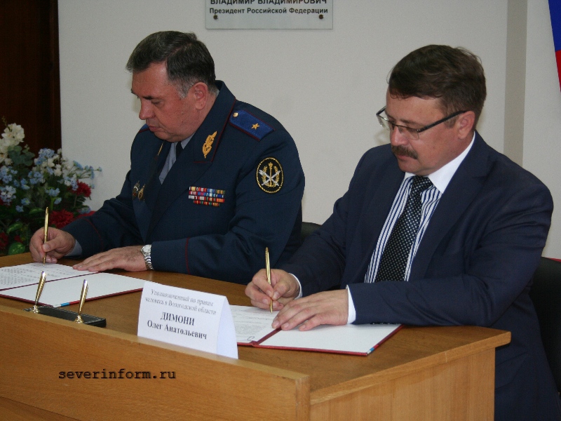 Двусторонние соглашение о сотрудничестве подписал Уполномоченный по правам человека в Вологодской области Олег Димони и руководитель ВИПЭ Сергей Бабурин. По мнению сторон, это позволит установить тесные рабочие и дружеские отношения.