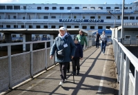 Лайнер прибыл из Москвы, он привез в Череповец 250 туристов. Многие видят город впервые.