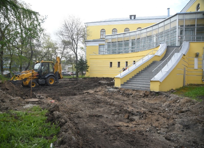 У библиотеки университета на перекрестке Ленина – Зосимовская началось строительство площадки под памятник.