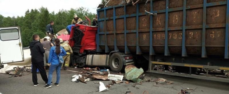 В ГУ МЧС Вологодской области обнародовали подробности ДТП, из-за которого сегодня более чем на полтора часа остановилось движение на трассе Москва — Архангельск (М8). По данным ведомства, у деревни Палкино на 422-м километре столкнулись груженая бумагой фура «Скания» и грузовик «Рено», перевозивший металлолом. Информация о происшествии поступила спасателям в 12 часов 50 минут.