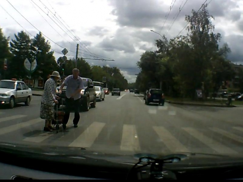 Остановив машину посередине дороги, вологодский водитель помог пожилой женщине перейти проезжую часть