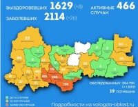Всего с начала пандемии заболели 2114 человек. Из них 686 в областной столице, 485 - в Череповце.
