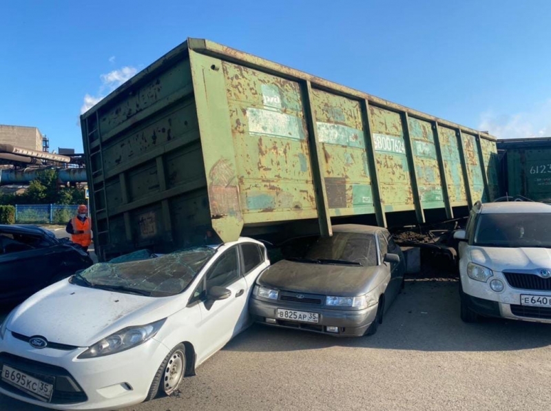 В Череповце сошедшие с рельс вагоны раздавили автомобили