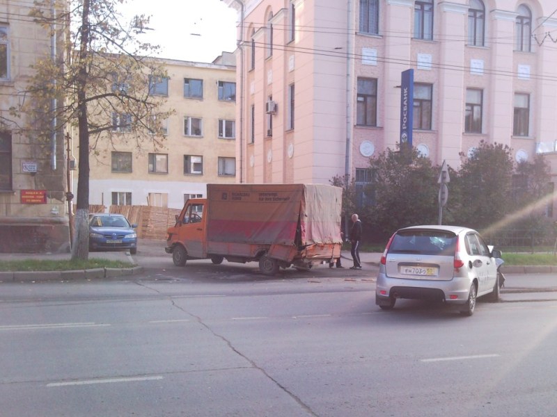 Фургон и «Lada Kalina» столкнулись, когда первый автомобиль начал сдаваться задним ходом, а водитель "легковушки" не заметил его маневра. В результат этого, «ВАЗ» на полном ходу врезался в заднюю часть фургона. Сейчас все материалы дела переданы для разбирательства инспекторам ДПС.
