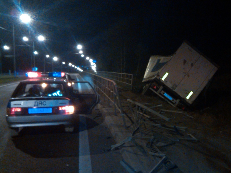 Пьяный водитель на фуре снес дорожное ограждение на трассе «Вологда — Новая Ладога»