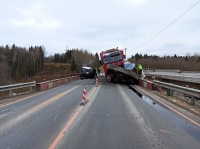 Столкнувшиеся «Газели» и фура перекрыли дорогу под Вологдой