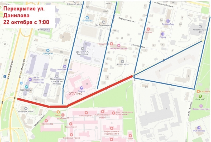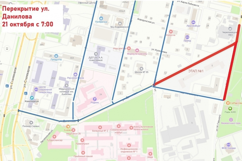 Улицу Данилова в Череповце на 2 дня закроют для движения транспорта