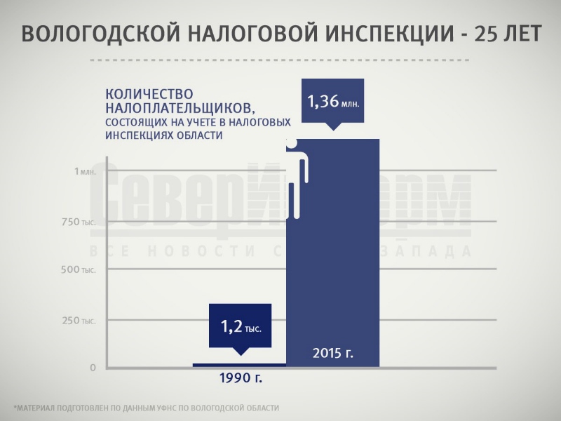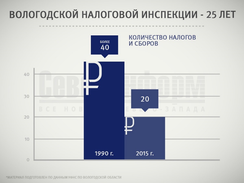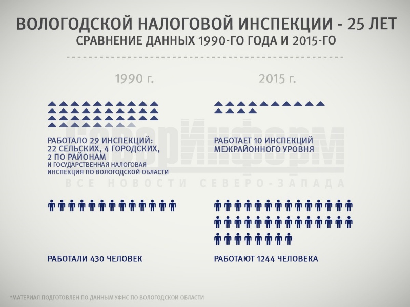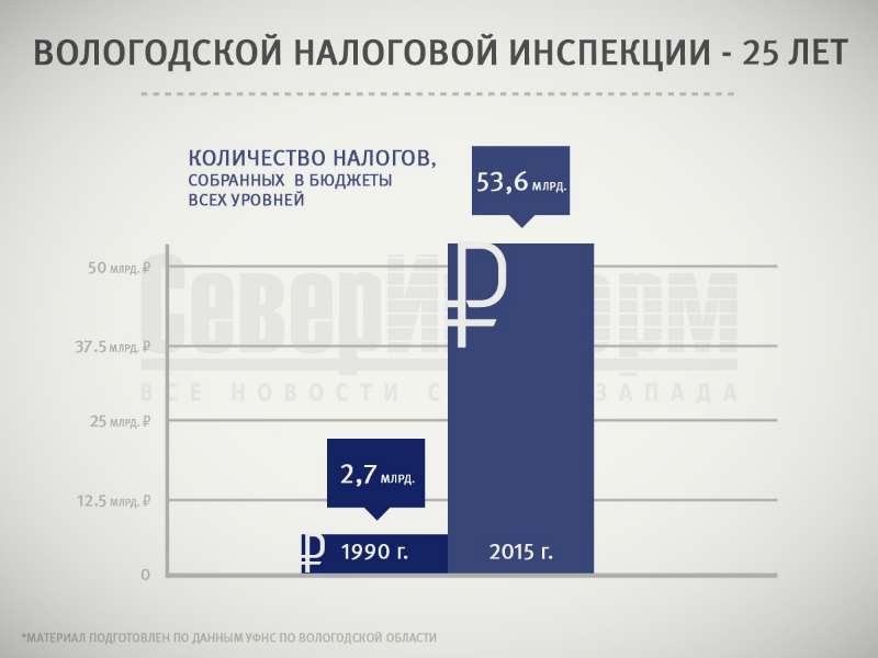 Налоговые органы России в этом году отмечают 25 лет со дня создания. Государственная налоговая инспекция по Вологодской области образовалась в июле 1990-го года. Накануне Дня работника налоговых органов, который празднуют 21 ноября, ИА «СеверИнформ» публикует интересные данные о работе ведомства четверть века назад и сейчас. Информацию предоставили в региональном УФНС.