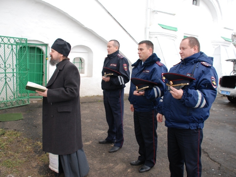 После молебна священник храма Успенья Пресвятой Богородицы освятил опасный участок. А в Вологде освятили патрульные машины ГИБДД, рассказали в областном управлении МВД.