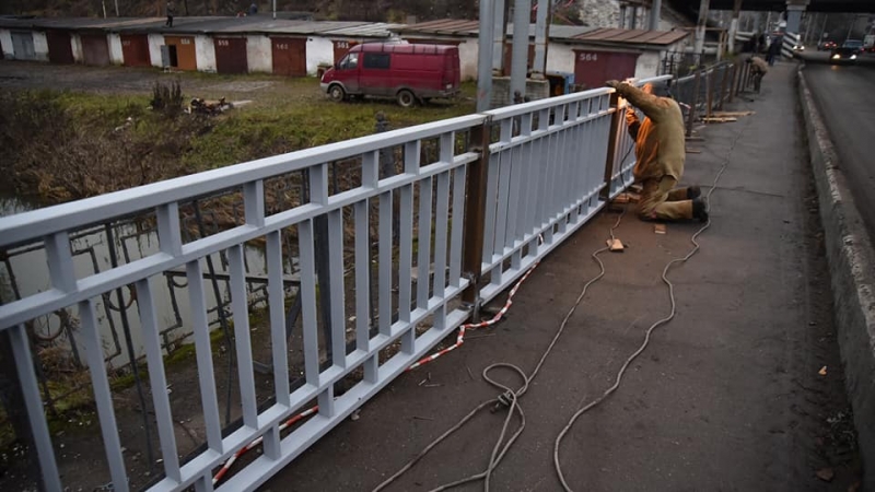 Чугунные решетки в центре заменили на простые металлические ограждения, похожие на те, что устанавливают для ограничения движения во время праздников. Такие же конструкции заменили и декоративные украшения на мосту на улице Конева.