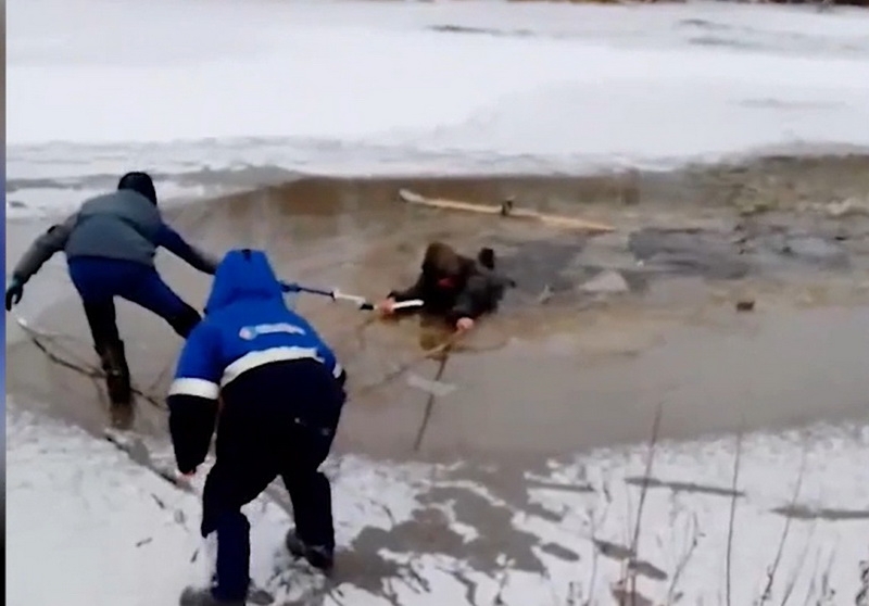 Видео в соц.сети выложил Вячеслав Голиков. На помощь мужчине пришли не профессионалы, а обычные прохожие. Потом подоспели и спасатели. Как мужчина оказался на льду, выясняется.