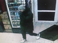 Молодой человек лет 20-25 попал на камеры в момент кражи алкоголя.
