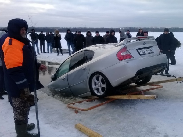 «У нас было два варианта. Первый - ставить автомобиль сразу на лед, второй - попытаться тащить ее к берегу подо льдом. Приняли решение тащить, так как лед на реке еще слабый, и конструкция по подъему могла не выдержать. Водолазы закрепили стропы на иномарке, завели трос подо льдом . Где-то половину пути мы протащили ее так, а потом выпилили майну, и лебедкой с эвакуатора подняли машину на берег», — пояснил корреспондентам официального сайта мэрии города Череповца заместитель директора Центра по защите населения и территорий от ЧС Дмитрий Санакоев.