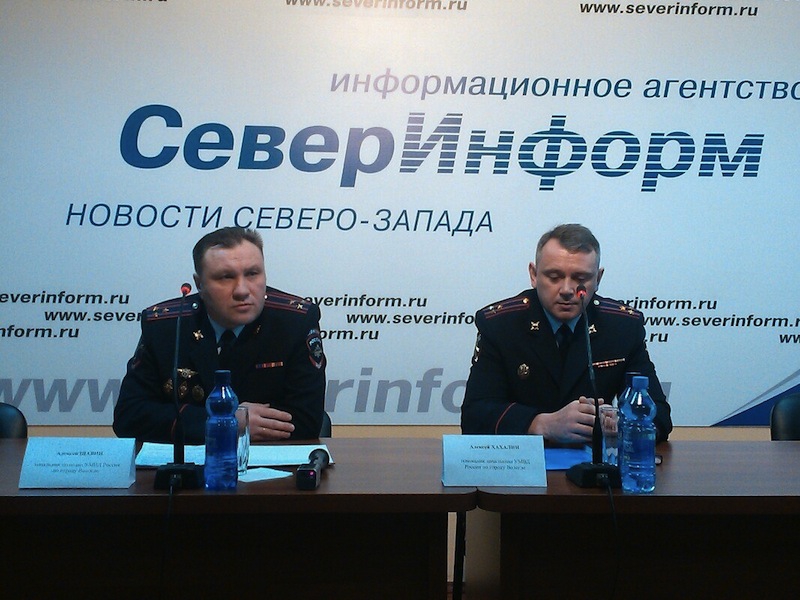 УМВД России по городу Вологде Алексей Щавин и помощник начальника УМВД России по городу Вологде Алексей Хахалин подробно рассказывают журналистам о проводимой