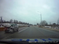 Наряд ГИБДД заметил, что "Лада X-RAY" с разбитой передней частью движется в сторону областной столицы. За легковушкой ехала иномарка, водитель который подавал сигналы. По всей видимости, первая машина стала участником ДТП, но пыталась скрыться.