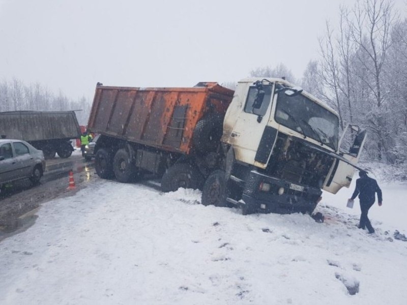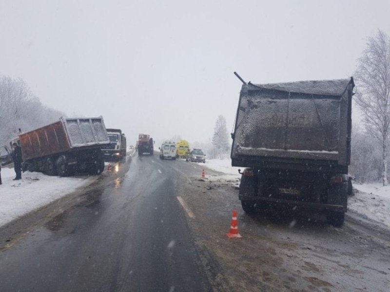 На череповецкой трассе столкнулись два грузовика (ВИДЕО)