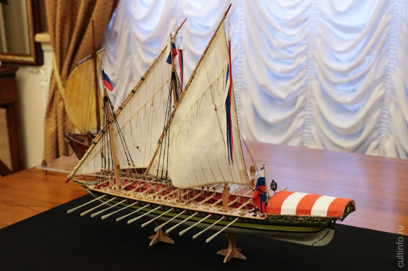 В честь такой даты учреждение получило сразу два подарка: макет петровской галеры и отреставрированный кафтан XVII века. Именно такой мог носить Петр I. Модель галеры сделал вологодский мастер судомоделирования Павел Карандеев. Это реконструкция с авторскими доработками и выполнена по чертежам, найденным в Военно-историческом архиве Санкт-Петербурга. В ней более тысячи мелких деталей, каждая из которых сделана вручную из различных пород дерева.
