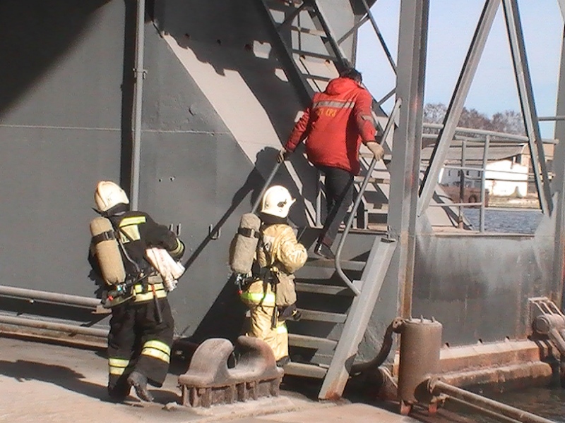 На АО «33 судоремонтный завод» проведены совместные учения моряков балтийского флота и МЧС России по ликвидации возгорания на корабле
