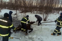 «Завели под коня стропы от грузовых ремней, раздолбили лед в районе задних ног и вместе с сотрудниками спорткомплекса вытащили животное из воды. Затем Оберегу дали отдохнуть и поставили на ноги. В конюшню русский рысак смог дойти уже сам», - рассказали в службе спасения.