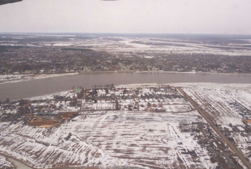Сухона начала вскрываться накануне. Вечером в город прилетел губернатор Вологодской области Олег Кувшинников.