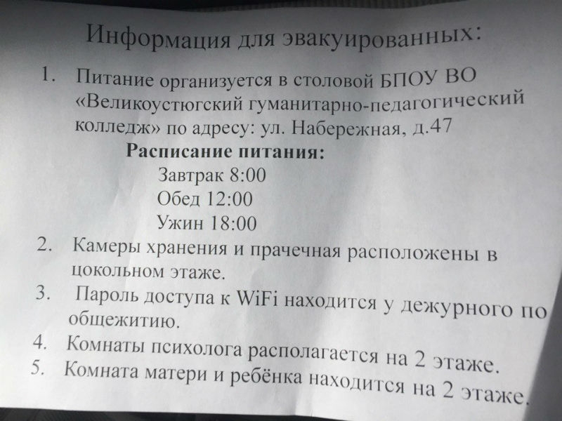 Всего в Великоустюгском районе создано 11 пунктов временного размещения для почти 800 человек. Основной затор находится в 60 км от Великого Устюга, вверх по течению, в пороге. Это значит, что вторая волна ледохода ещё впереди.