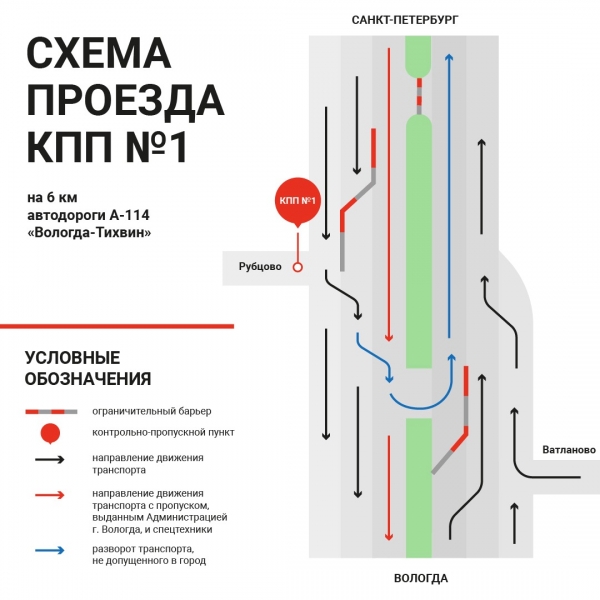 - въезд по пропускам, выданным администрациями Вологды и Вологодского района;