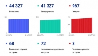 Общее число случаев 44327. Выписали с больничного уже 41327 пациентов, в том числе, за сутки 72.