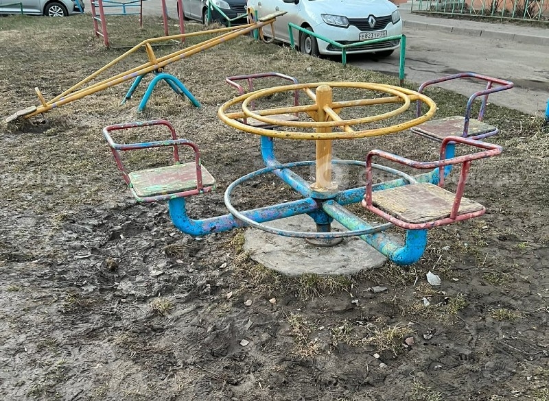 «Любой дождь и будет болото. На горке кататься невозможно, просто стоит для вида, потому что, упав с такой высоты, ребенок может получить травму. Карусель вся перекошена, шатается вверх-вниз, а под нею «болото». Качели, видимо, держатся на добром слове. В том году звонили в УК, они подсыпали песочек и все, она так же дальше шатается, того и гляди выпадет из земли. Зато в песочницу песок возят, да, поэтому песочница как царица, стоит выше всех на площадке. По планам ремонт у нас будут делать только в 2024 году», - пишет вологжанка.