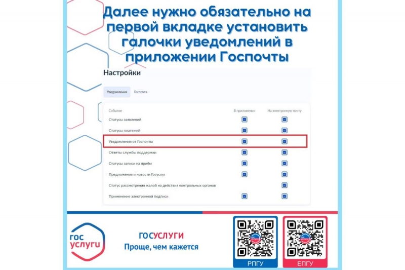 Пользователь сам выбирает в настройках, какие ведомства станут присылать электронные письма. По умолчанию включены извещения от приставов, Госавтоинспекции и Федеральной государственной информационной системы досудебного (внесудебного) обжалования. Для получения писем от Почты России необходимо в настройках уведомлений указать почтовые адреса, на которые госорганы будут отправлять бумажные заказные письма. Затем в Госпочту они начнут приходить в электронном виде и храниться в личном кабинете портала.