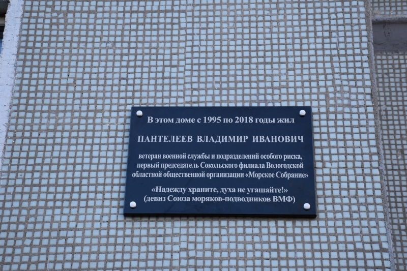 «Мемориальная доска – это дань памяти Владимиру Пантелееву от соратников, членов Сокольского отделения организации «Боевое братство», Сокольского филиала «Морского Собрания», - рассказал глава округа Юрий Васин.